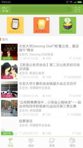 活动公告栏:收集学校所有活动信息,参与更多活动,认识更多妹子。