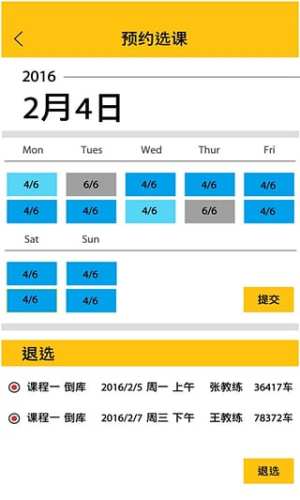 通过手机App提交报名,预约教练空闲时间,自由选课选教练