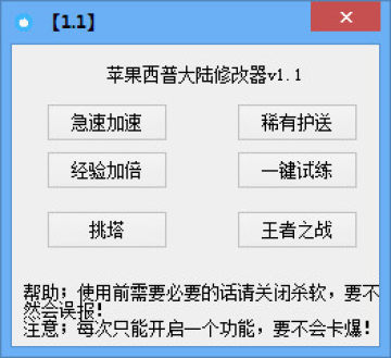 2、每次只能开启一个功能,要不然游戏会卡爆.