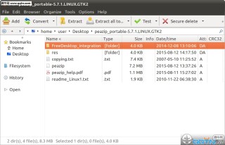 在PeaZip目录FreeDesktop_integration文件夹中包含的脚本的例子为在主机系统集成便携式版本,或增强/定制安装包的集成。