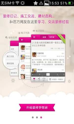 你可以在装修梦想家中,和网友交流、分享装修心得、建材选购等装修各各方面遇到的事情;