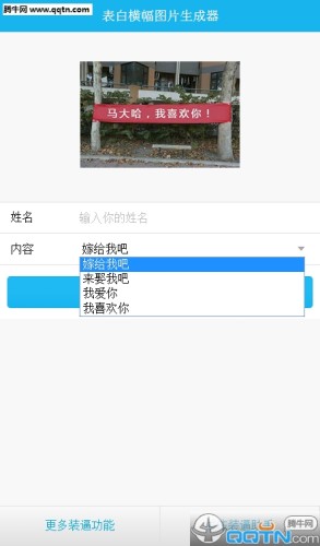 横幅表白图片生成器app是一款最接地气的表白装逼神器。想在横幅上向女神表白?或用横幅图片在朋友圈装blitty让大家以为你被男神表白了?腾牛小编满足大家的愿望,无论是想表白,或想被表白,通过横幅表白图片生成器app一键帮你实现。