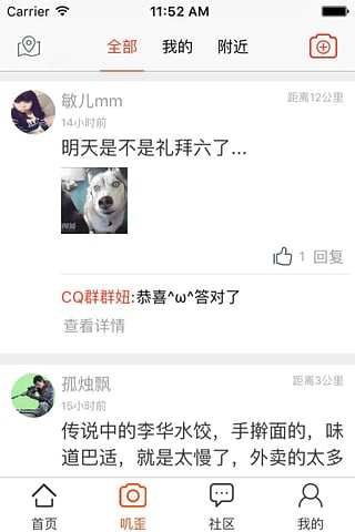 •在“叽歪”中,可以发布文字、图片,与网友分享心情,秀出生活点滴,爆料奇葩事、相亲交友解寂寞。
