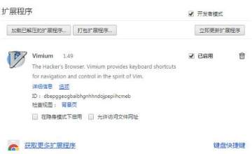 Vimium是一款以模拟linux或Unix操作系统中的vim编辑器的操作方式来操作Chrome的谷歌浏览器插件,让那些熟悉linux或Unix的用户可以过把瘾。