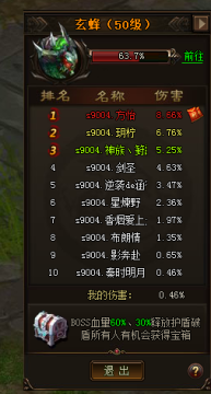 2) BOSS死亡时,输出最高的前10名可获得对应的礼包。