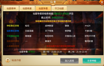 另外加入仙盟时间少于24小时的盟友是不能进入仙盟争霸界面的,大家要先确定好效力的仙盟哟。
