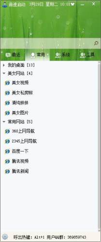 快速启动是一款桌面管理快捷启动的软件,本软件采取类似QQ界面设计风格,精益求精,力求与用户使用习惯 保持一致,同时快速启动采用最新高速缓存机制,能以最快速度启动软件、文档,是办公室必备软件。需要的可以来本站下载。