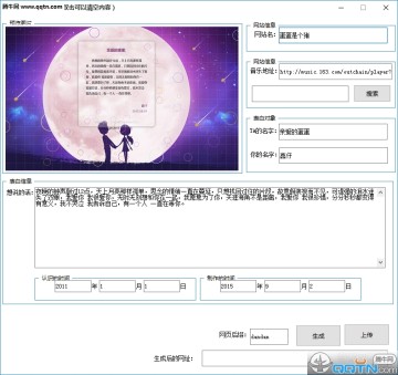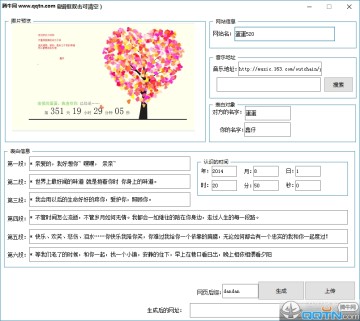 淘大傻表白网站制作工具是一款愚人节表白网页生成器,这款软件可以为你提供多种网页表白模板,包括爱情树原版、爱情树立体幻灯片、浪漫爱心、月色浪漫、立体图片背景、简约表白网页、黑色爱心雪花、阿狸表白等等模板,喜欢的朋友快来试试这款软件吧!