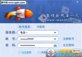 1、解压安装968棋牌游戏中心后,双击LOGO图标弹出登陆框,点击“帐号注册”进行注册;注册成功后就直接进入平台了;下次再进平台时,只是双击桌面游戏平台ICO图标,输入帐号及密码,点击登录即可进入平台游戏