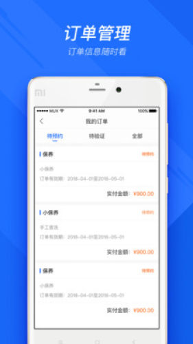 2、订单管理:可随时查看订单、操作预约及验证订单;