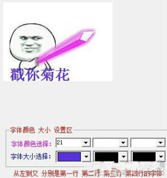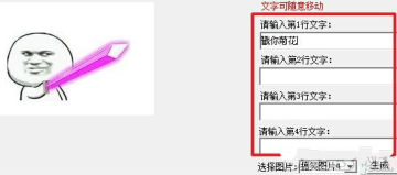 该图片支持自定义图片、自定义文字(4行文字)、自定义文字颜色大小等,生成只属于自己的搞笑图片。