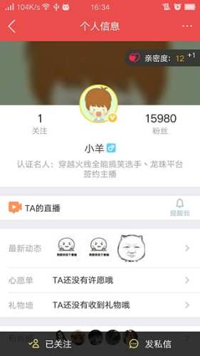5.个人信息:全新个人信息主页,方便设置个性头像、昵称和签名。许愿池和礼物墙,提升自身魅力。