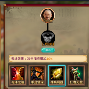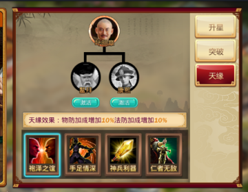 用装备激活的天缘效果,根据羁绊武将/装备的品质不同,属性会有差异,防御性羁绊!