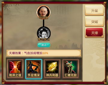 高资质伙伴才有的天缘,提高幅度最高,也最实用,但是由于要求较高,如果能凑齐那么对于每个伙伴的属性能提升不少
