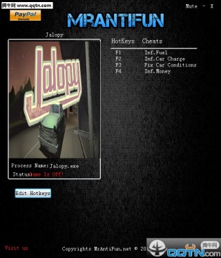 老爷车之旅Jalopy修改器,共提供了四项辅助功能,如无限电池、无限燃料等,使用时请玩家先运行游戏,然后再激活修改器即可。