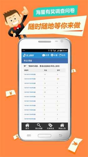 随时随地通过手机参加商业调查,查询调查记录。方便、快捷、省时