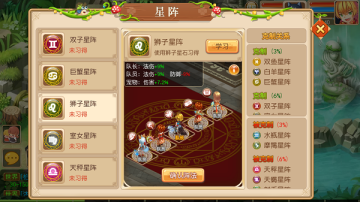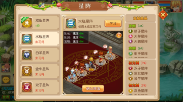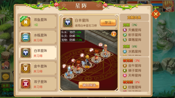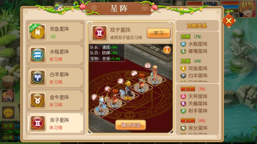 以下列举全部星阵都处于1级状态,使用星石可以提升星阵等级,提升星阵效果;