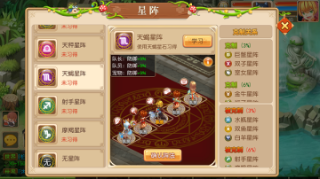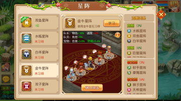 星阵效果:增加队长物理伤害18%,减少队长速度18%,增加队员免控9%,增加宠物伤害3.6%和防御5.4%