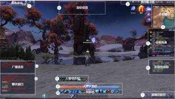 10、技能快捷栏 - 将技能、道具、动作拖拽进快捷栏,从而更方便地使用。最中间的四个技能槽为法宝技能