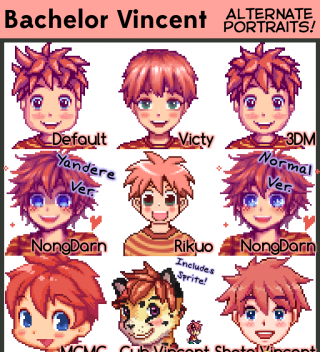 星露谷物语可娶文森特MOD是游戏星露谷物语的一款游戏MOD,MOD为游戏添加各种可选的小正太形象,是不是很诱惑呢,喜欢的赶快下载使用吧。