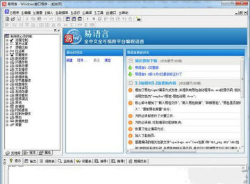 易语言汉语编程环境是一个支持基于汉语字、词编程的、全可视化的、跨主流操作系统平台的编程工具环境;拥有简、繁汉语以及英语、日语等多语种版本;能与常用的编程语言互相调用;具有充分利用API,COM、DLL、OCX组件,各种主流数据库,各种实用程序等多种资源的接口和支撑工具。