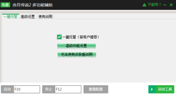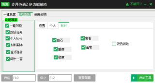 新浪赤月传说2辅助,目前提供了两款辅助脚本,拥有一键70级、炼妖任务、个人BOSS、材料副本、金币任务、闯十二宫等功能,一键托管让你轻松升级。