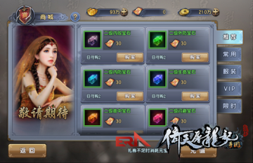 最后就是比较常见的设定了,如商店刷新时间比较漫长,如果花费元宝的话,就能立即刷新了。至于土豪专用的元宝商城,这里就不做太多介绍了,总的来说就是有多大能力消费多少钱,用零花钱轻轻松松快快乐乐的消费,才是正确的游戏方式啦。