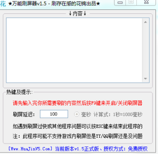 万能刷屏器是花锦为刷存在感的朋友打造的一款刷屏工具,当然,刷屏的作用也不是光是为了存在感,还有许多别的用法,比如聊天很混杂的时候可以用来发消息等等,需要的朋友欢迎下载使用。