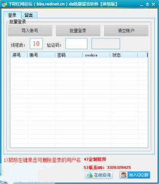 T哥红网论坛批量留言软件是专为红网论坛网友制作的一款批量留言工具,可以红网论坛无限群发留言,每天批量留言10W+不是问题。让你疯狂刷留言,需要的用户可以下载使用。