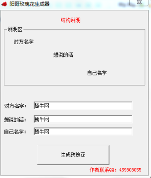 打开软件后早三个白色框框里分别输入对方的名字,想说的话,自己的名字