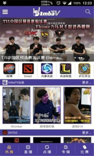 ImbaTV直播手机版下载是同名Dota 2和炉石传说以及英雄联盟的门户网站的官方客户端。为您提供便捷、稳定、流畅、高清的视频播放体验。