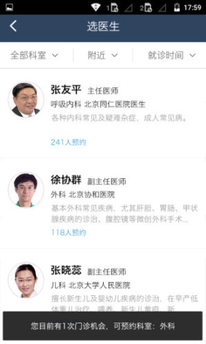 2.门诊预约:随时随地预约三甲名医,就近看病,30分钟服务保障