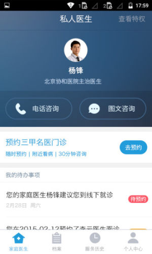 3.健康档案:每一次病程变化都会由私人医生和门诊医生为您记录,