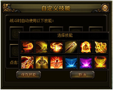 点击自定义按钮即可进入自定义技能界面,在此处您可以选择要施放的技能,放在前面的技能会优先施放哦~