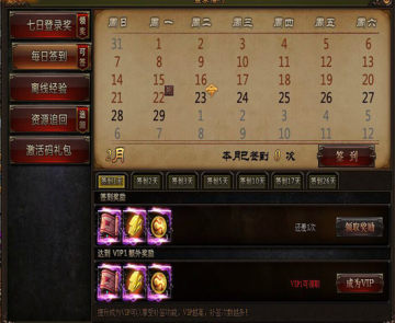 除了开服前7天外,每天登录游戏进行签到还能领取大量的绑定元宝、商城道具,签到时间越长奖励越丰厚。
