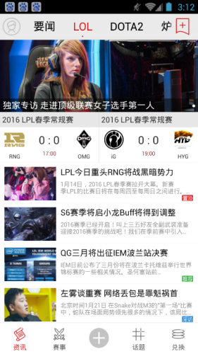 2.新增加“我的电竞”模块,用户可以订阅自己喜欢的队伍或选手,并在首页显示相关的消息资讯。