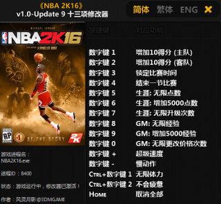 NBA 2K16 v1.0-Update 9 十三项修改器是一款可以支持9号升级档版本的多功能全版本中文修改器,这款软件为玩家提供不限体力、超级速度、无限经验等等功能,帮助喜爱2K16游戏的玩家轻松获得比赛的胜利,需要的小伙伴快快把这款NBA 2K16修改器下载回去吧。