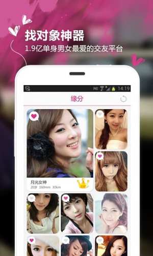 结婚,一定要靠亲戚朋友安排相亲么,那是落伍的“剩男剩女”的恋爱方式!!!而且,为什么要等到别人催呢?在这里,工作太忙、生活太累、周围没合适的…通通不是问题,你需要的,仅仅是一次下载 + 几次点击,轻松开启一段都市轻恋爱! 在这里找对象,是靠挑的!女王萝莉,男神正太,辣妹森女,文青骇客,白富美,高富帅,凤凰男,官二代……如果你不知道你要什么,那么就从此刻开始, 挑吧! 这里不单单是人多,更重要的是真实可靠!手机、生活照、实时动态,都为了帮你足不出户,找到身边最合适的TA。 我的相亲,我做主!