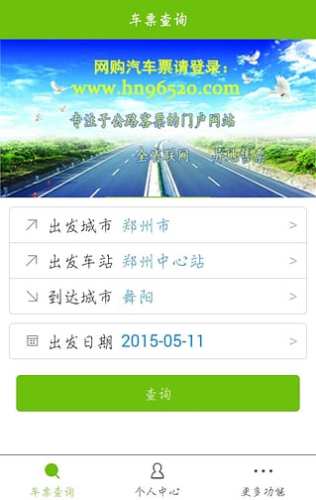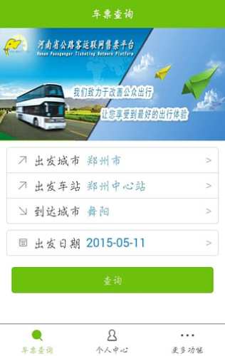 河南汽车票网上订票App,是由河南省公路客运联网售票平台打造的手机购票软件,提供河南全省所有汽车客运站售票服务,支持在线查询汽车班次、在线预定汽车票,致力于为广大河南市民出行提供便利!