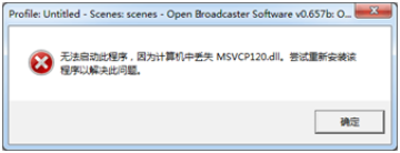 问题7:为什么安装全屏弹幕源后OBS启动提示计算机丢失MSVCinP120.dll