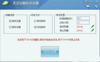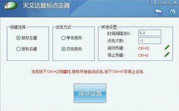 3设置好所需要的点击内容, 包括: 鼠标单击或双击, 鼠标左键或右键, 点击的时间间隔和点击次数等, 这里需要注意的是如果设置-1则表示无限点击次数, 如果需