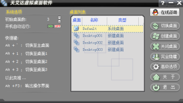 1、可以创建一个或更多个桌面, 您可以指定让该软件创建多少个桌面, 这样就不会有桌面不够用或桌面太多的情况