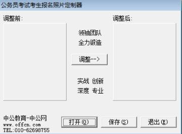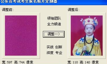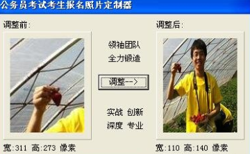 公务员考试考生报名照片定制器是一款专为公务员考试报名照片而打造的一款图片编辑工具,软件可以让用户轻松把照片编辑成公务员考试规定尺寸大小的图片,需要的朋友欢迎下载使用。
