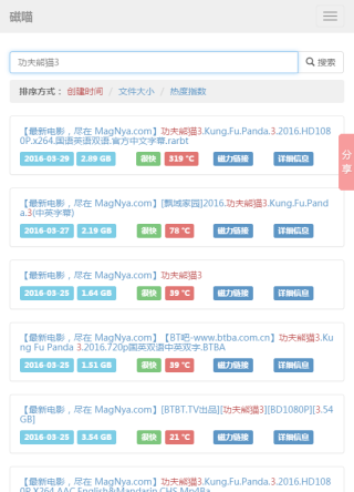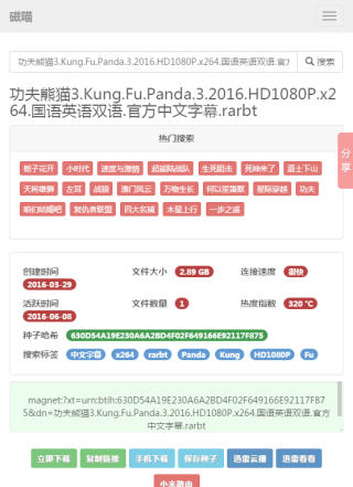 磁喵种子搜索神器手机版是由磁喵官方网站打造,用户通过访问磁喵手机版页面,就能在你的手机上也能随时随地搜索各种ACG种子磁力链接资源啦;可以搜索动漫、漫画、游戏、电影、软件等资源,搜索结果提供手机下载、种子保存、迅雷云播、迅雷看看、小米路由器推送等多种方式,随时随地看大片!