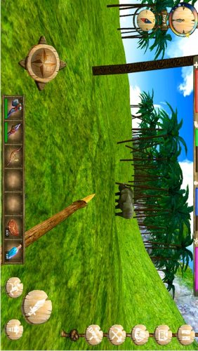 使用道具时请触摸一下屏幕(比如,砍树时需要点击树木,并提前手持斧头)。剥掉动物皮时需要提前手持刀。 注意你的生命值,饱腹感,口渴感,不要陷入困境。