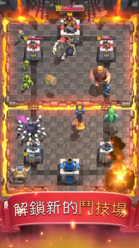加入斗技场! 《Clash Royale》是由《部落冲突》创作团队所制作的即时多人对战游戏,你可以在游戏中重温许多你喜爱的《部落冲突》角色与其他内容。