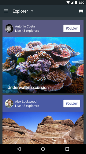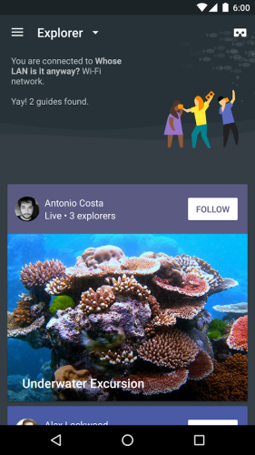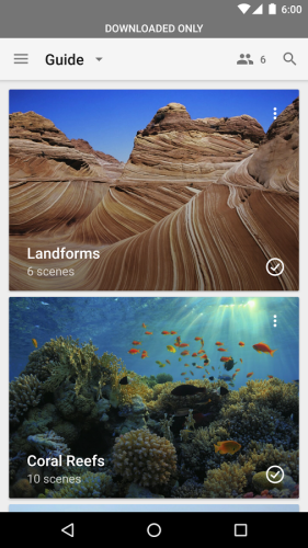 专为教室和小组而设计的谷歌实境教学应用可以让一名教师作为“向导”来指引一群“探索者”观赏360度的3D图片集合,同时还可以指出其中有趣内容。
