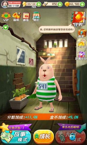 《逃亡兔手游破解版》是一款根据同名剧集改变的手机游戏,该游戏以兔子为主角,为玩家打造了一个丰富多玩法的解谜平台。游戏画质高清优秀,操作流畅,玩法模式都十分多样,喜欢的用户赶快来下载吧!