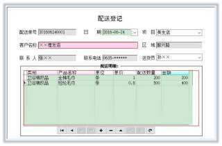 二、业务管理:配送登记、配送收回、配送明细、配送查询、财务统计