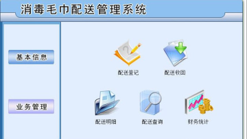 消毒毛巾配送管理系统适合酒店、宾馆、理发店等地方使用,将配送、收回、统计集合于一体,其软件界面设计简洁、美观其人性化的管理可以使用户轻易上手,大大节省工作时间,提高工作效率。